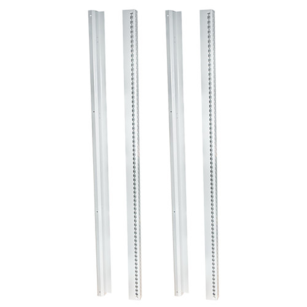 Perfil Vertical para armarios de 2000 mm de altura. Incluye pack de 4 perfiles verticales. Los lados interiores tienen troqueles rectangulares y redondos para fijar accesorios. Las caras exteriores son planas con troqueles para la fijación de puertas y paneles. Totalmente reversibles.