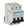 Interruptor Modular Automático riel DIN (MCB), de 3 polos, corriente nominal de 40A, capacidad máxima de ruptura Icu 10kA, y curva C.