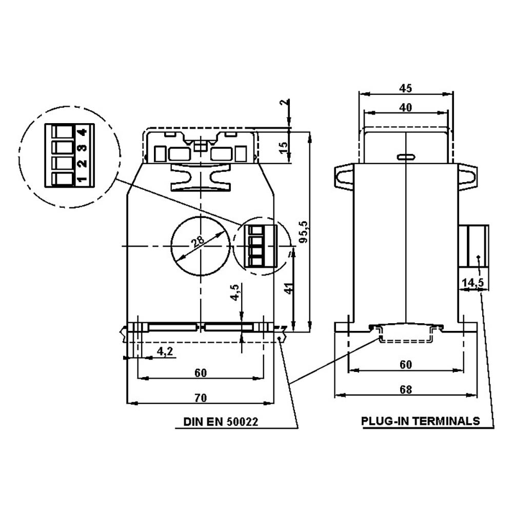 El Sensor TDB028 con diámetro de 28mm para Relé de Fuga a Tierra Tipo B. Trabaja en un rango de corriente de 30mA÷1,5A, y mide corrientes de CA, y CC con un ancho de banda de CC de 10 kHz y una resolución de 1 mA.